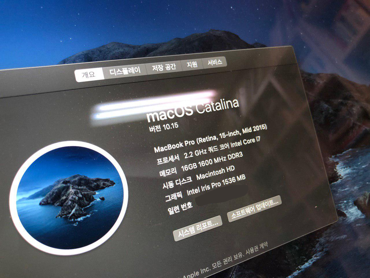 제품 사양: CPU: 2.2GHz Intel Core i7 RAM : 16GB SSD용량 : 256GB